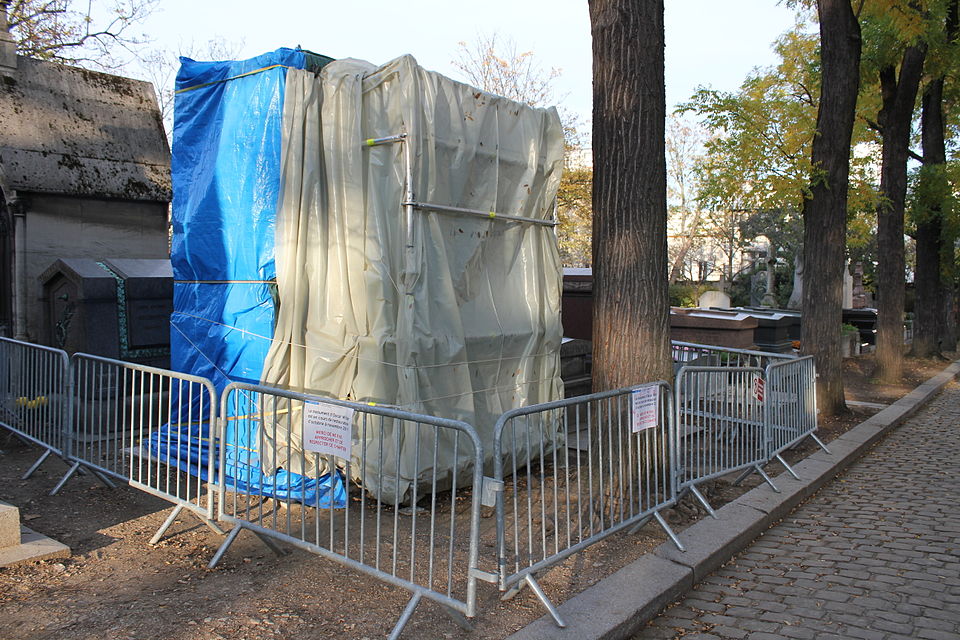 En attendant que je devienne généalogiste, juriste et jusqu’à ce que l’œuvre soit dans le domaine public, c’est-à-dire en 2030, je vous propose une photo parfaitement légale du monument prise lors des travaux de rénovation de la sépulture.