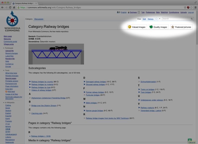 Wikimedia Commons dispose de trois labels de qualité. Pour faire simple, il y a la médaille de bronze (image de valeur / valued image), la médaille d’argent (image de qualité / quality image) et la médaille d’or (image remarquable / featured picture).