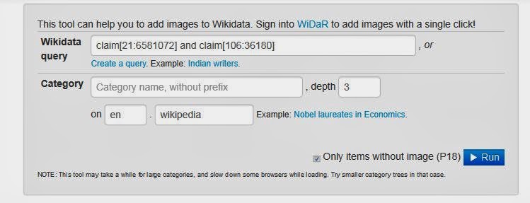 Exemple : la requête claim[21:6581072] and claim[106:36180] permet d’afficher les fiches Wikidata des femmes écrivaines sans portrait (plus exactement, dont la propriété P18 est vide).