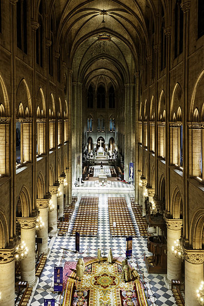 Le soir du 15 avril 2019, un incendie se déclare au sein de la cathédrale de Notre-Dame de Paris. Prenant rapidement le l’ampleur, les flammes détruisent intégralement sa flèche, qui s’effondre, ainsi que les toitures de la nef et du transept, charpente comprise. L’intervention de centaines de pompiers, jusqu’au lever du jour le lendemain, permet de sauver la structure globale de l’édifice et d’épargner les deux tours, ainsi que la façade occidentale. Néanmoins, les dégâts et les pertes sont considérables, tant à l’extérieur qu’à l’intérieur du monument.
