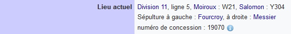 Vous retrouverez la classification crée par Salomon dans les fiches d’inventaire qui se trouvent sur Wikimedia Commons. Voir par exemple la fiche de la tombe de la famille Breguet.