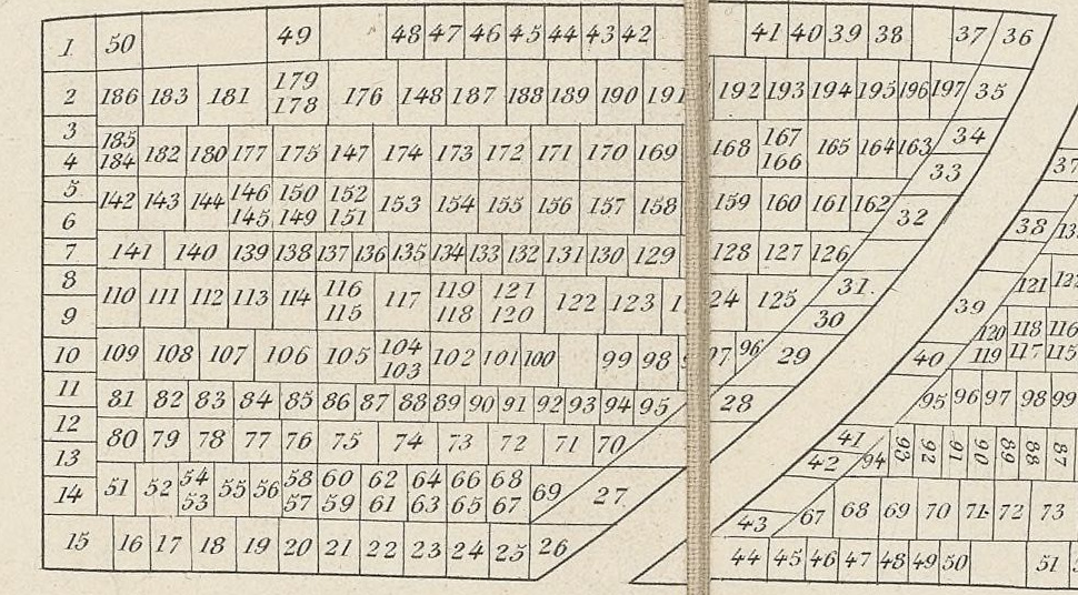 L’ouvrage est constitué de tableaux qui correspondent à un inventaire complet des concession perpétuelles du cimetière en 1855. Cet inventaire est complété d’une localisation assez fine des concessions.