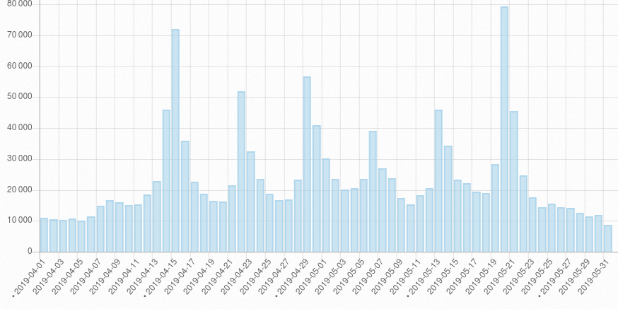 Comme en 2018, l’article consacré à la France arrive en tête avec plus de 8 millions de vues. Pas de raison particulière mais une audience très importante une bonne partie de l’année avec plus de 20 000 visites quotidiennes. La faible part du trafic venant du mobile (24 %) et certaines baissent brutales laissent néanmoins penser qu’une part importante de l’audience n’est pas naturelle.