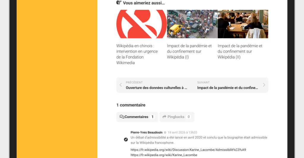 J’ai fait de même en rendant cliquable la date affichée sur la mise en page type d’un billet de blog (exemple) en modifiant le fichier single.php. Voilà le résultat des modifications réalisées :